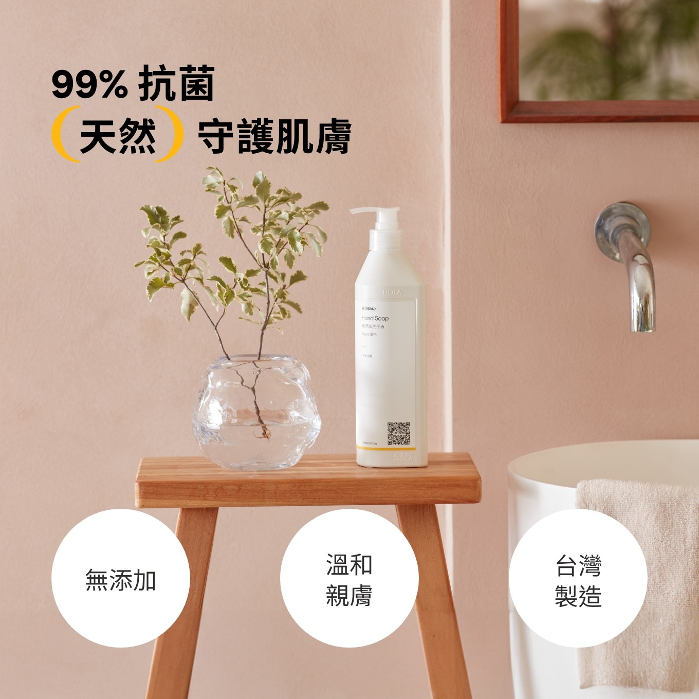 簡約不簡單的細節設計,由內而外選用環境友善原料。天然溫和洗劑,搭配獨特方弧形瓶身設計,擁有舒適的握持感,除了節省收納空間、帶來和諧一致的溫潤線條,更能打造空間美學。