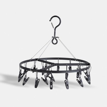 多功能不鏽鋼防滑防風多夾衣架 圓形24夾 33.5 x 30cm 墨綠色 1組