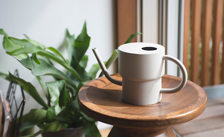 以貯水桶為概念的澆花壺。細長壺嘴的設計,適合用於各種空間。