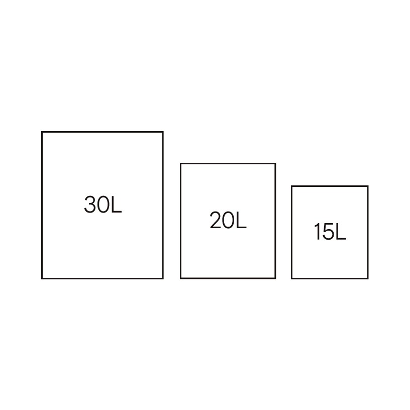 共有三種清潔袋尺寸,30L、20L、15L,可對應多種垃圾桶造型,輕鬆打包永續生活