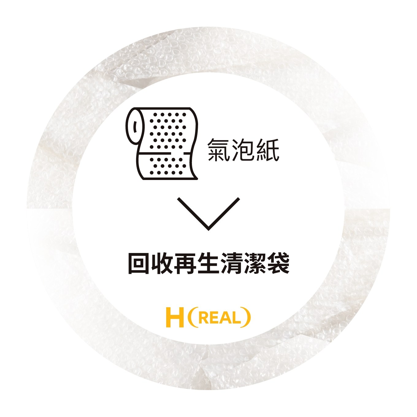 網購、宅配雖為生活帶來便利性,然運送中使用的一次性塑膠包材會對環境造成危害。根據環保署統計,台灣每年產生的網購包裝垃圾超過 2.1 億件,REAL 清潔袋 100% 使用再生保麗龍、保鮮膜、OPP 袋等廢棄運輸包材,控管製程零垃圾產出,體現環保綠循環。