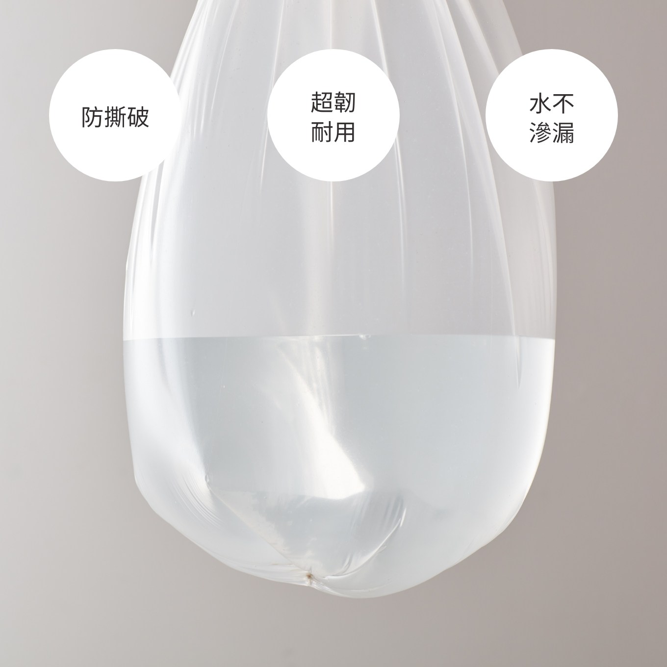 為解決一般清潔袋偏薄、易破、湯水滲漏等使用問題,採取美國特殊塑膠造粒製程,與強化拉力處理技術,有效提升清潔袋表面張力結構,達到耐磨、耐用、水不滲漏的日用需求。經多種 TGS 強度測試,檢驗回收再生材料的韌性達到接近新料,讓實踐綠色友善的同時,亦能保有生活品質。