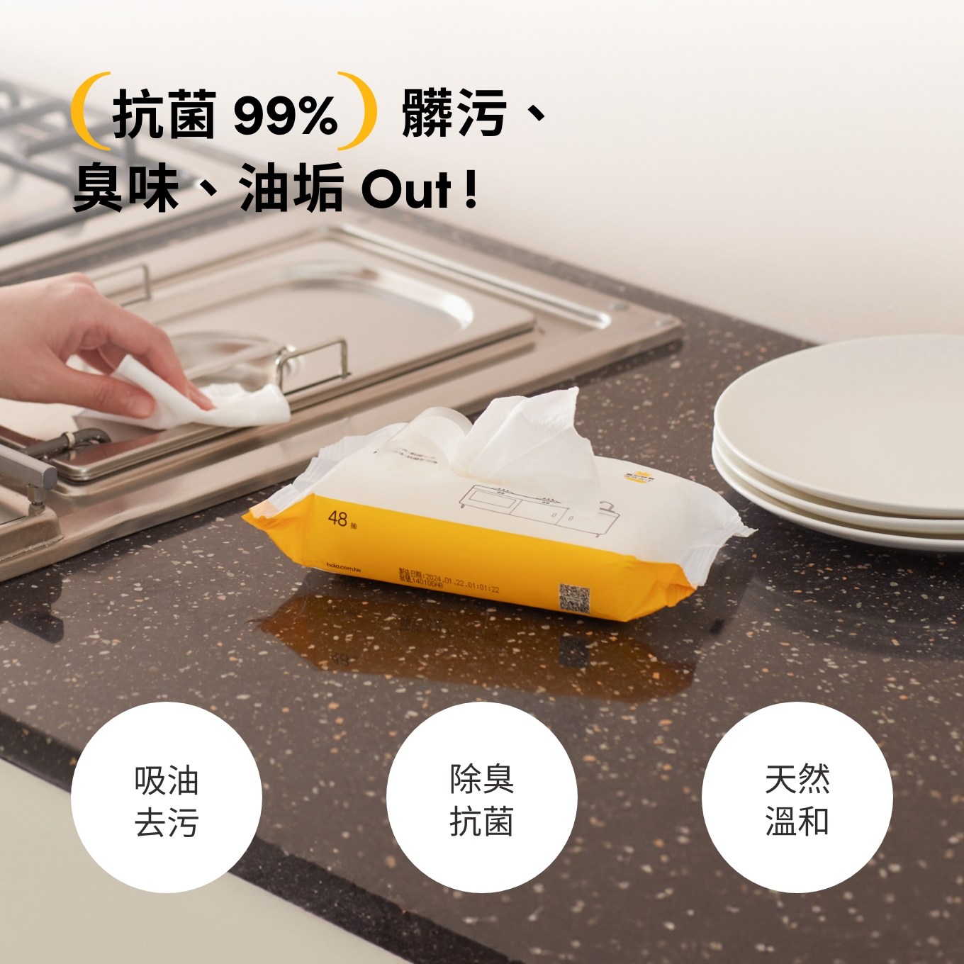 天然潔淨植萃配方,溫和清潔不傷手,搭配抽取式設計,一次一抽不連張。以多元清潔為理念,提升紙巾柔韌度,可雙面反覆使用,方便料理後隨手擦拭各種廚房場域,永續環保又安心。