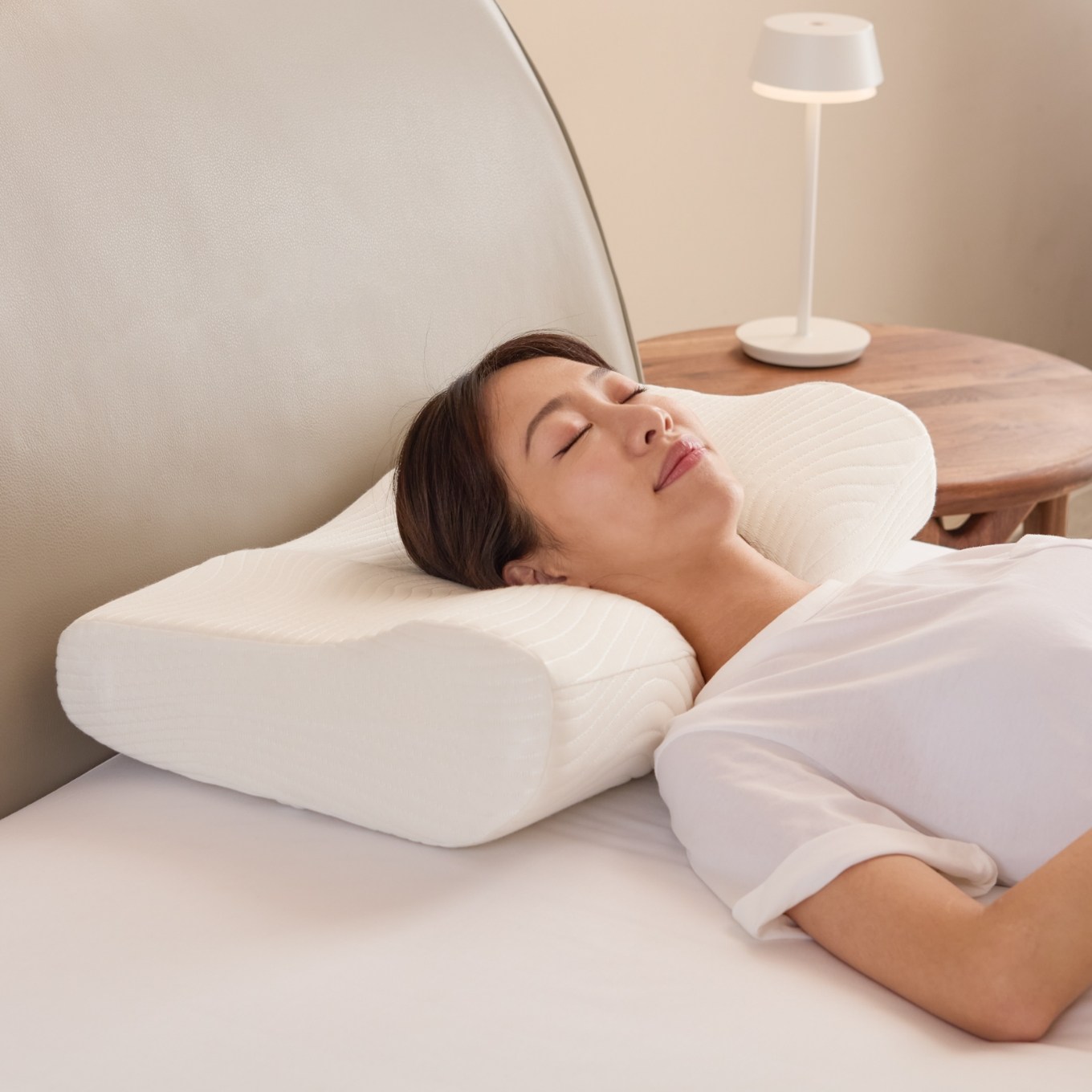 枕芯中央高度較低,能好好包覆頭型與後頸,朝兩側翻身側睡時,順勢提升高度,降低肩膀與枕頭間的壓迫感,不管正睡或側睡,完美契合肩膀與頭頸,告別肩頸痠痛。