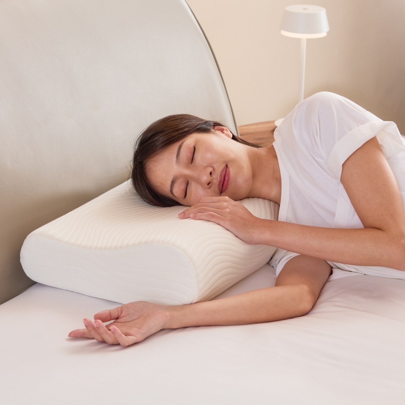 前高後低的設計,恰到好處的曲線與支撐度,能降低側睡時肩頸與枕頭間的壓迫感,完美契合肩頸曲線,告別痠痛,有效紓解壓力。