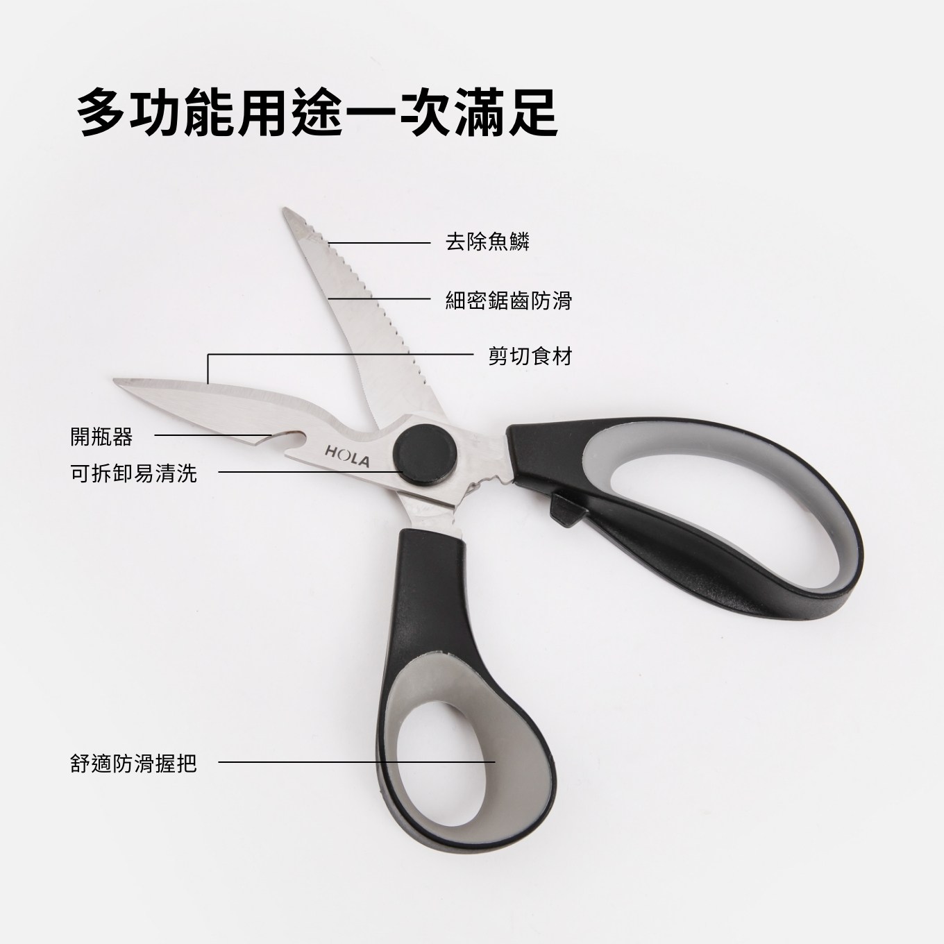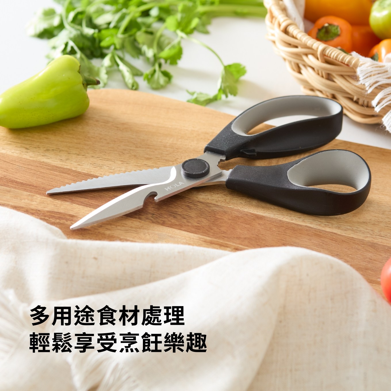 HOLA 團隊深入研究台灣人的料理習慣,專為解決廚房中的各種料理難題而設計的多用途料理剪刀。