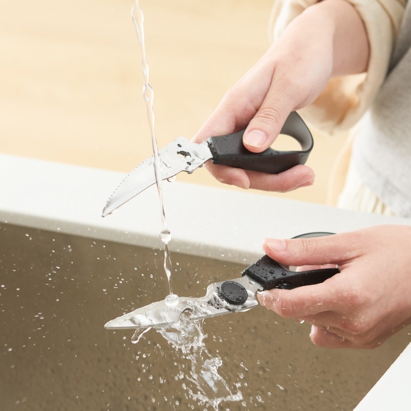 無論是週末的家庭聚餐、還是缺少工具的戶外露營,這款剪刀皆能輕鬆應對。高品質不鏽鋼材質,搭配多功能設計,讓美味佳餚輕鬆上桌。銳利與鋸齒雙刃多用途設計讓切剪蔬菜、肉品、軟骨或處理海鮮變得輕而易舉,同時具備開瓶功能,享受美酒與佳餚的完美搭配,讓料理過程更省時省力,打造理想廚房。