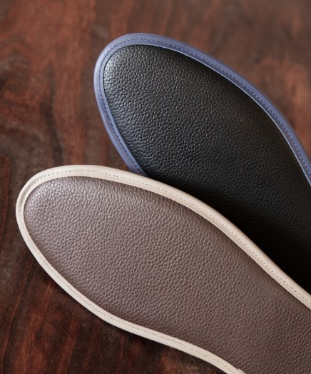 拖鞋內裡選用透氣豬皮,並印上質感壓紋,從細節展現不凡品味。