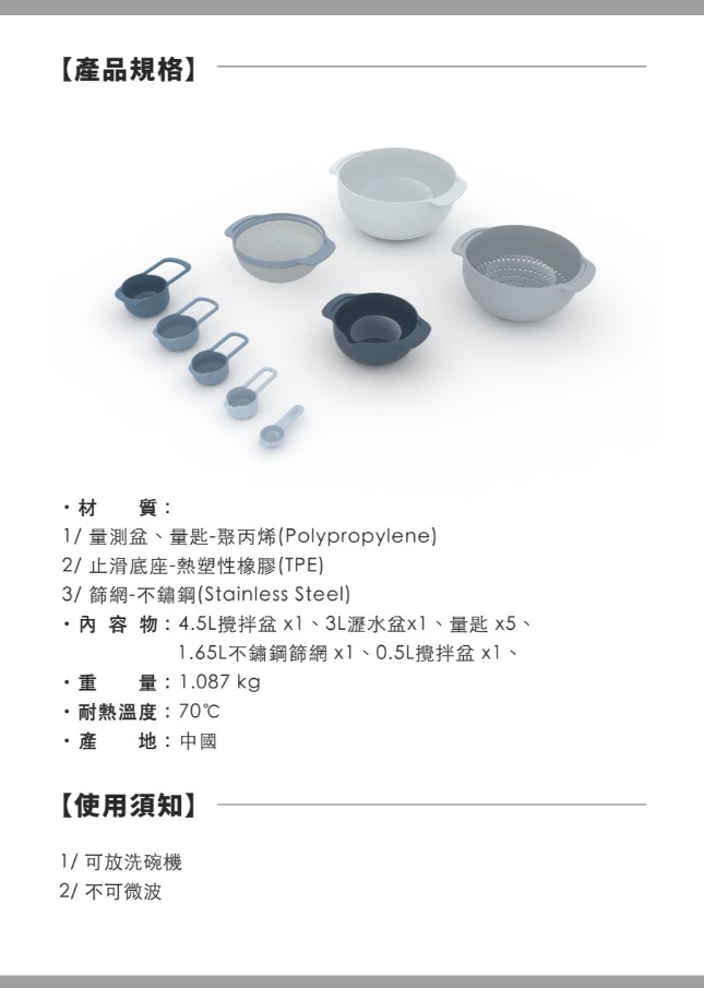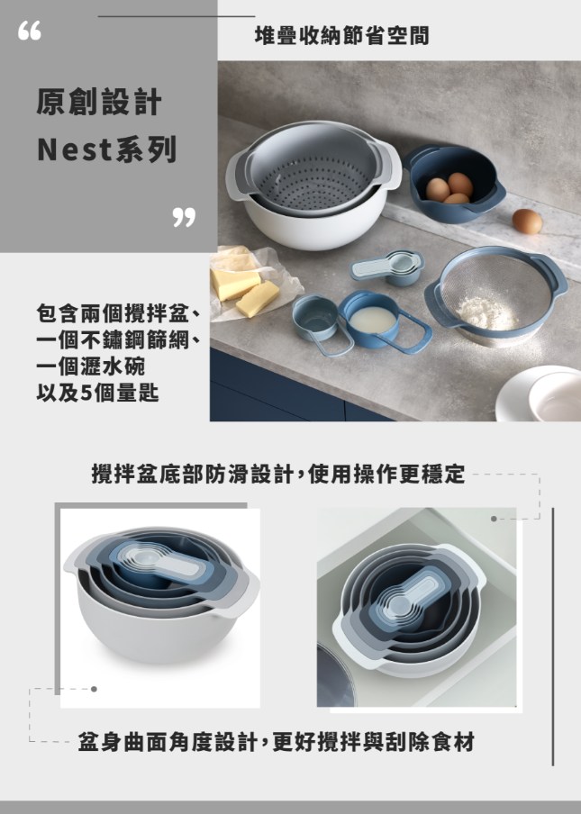 Joseph Joseph Nest系列 多功能攪拌量測盆9件組 - 天空藍