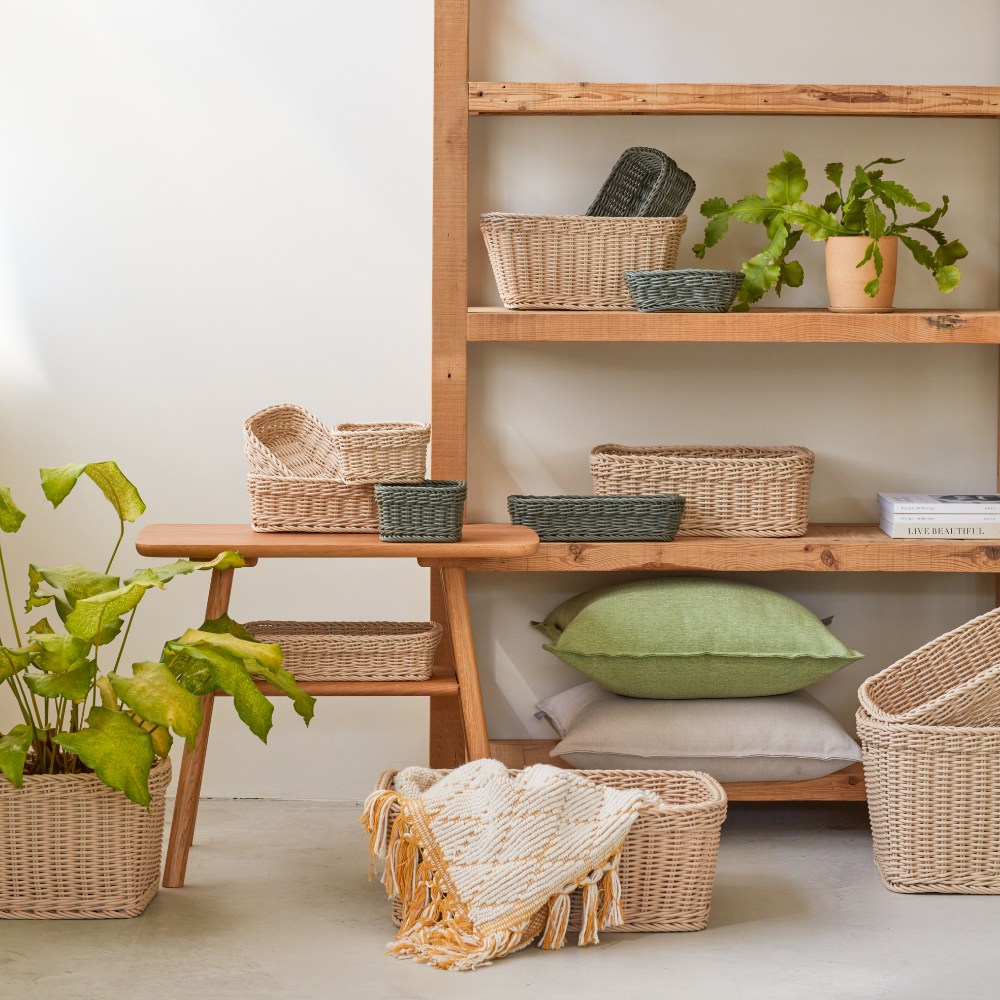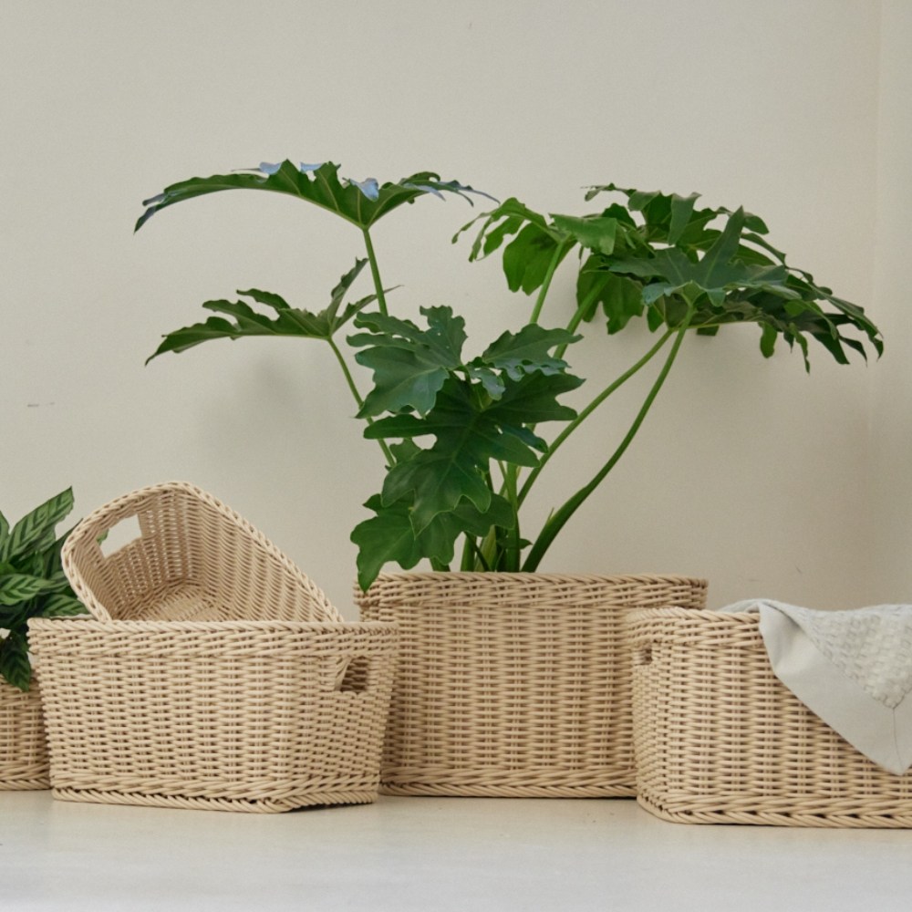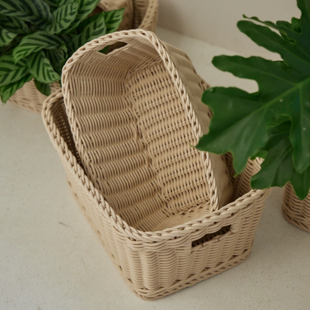 奧可利霧紋手工編織置物籃XS 長形奶茶