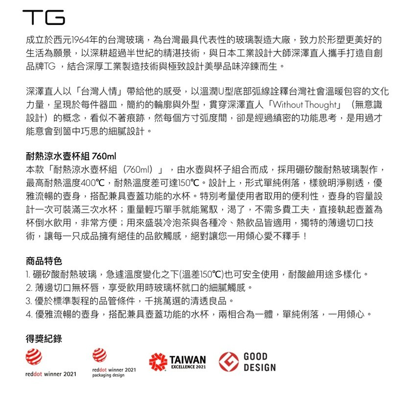 TG 耐熱涼水壺杯組 620ml