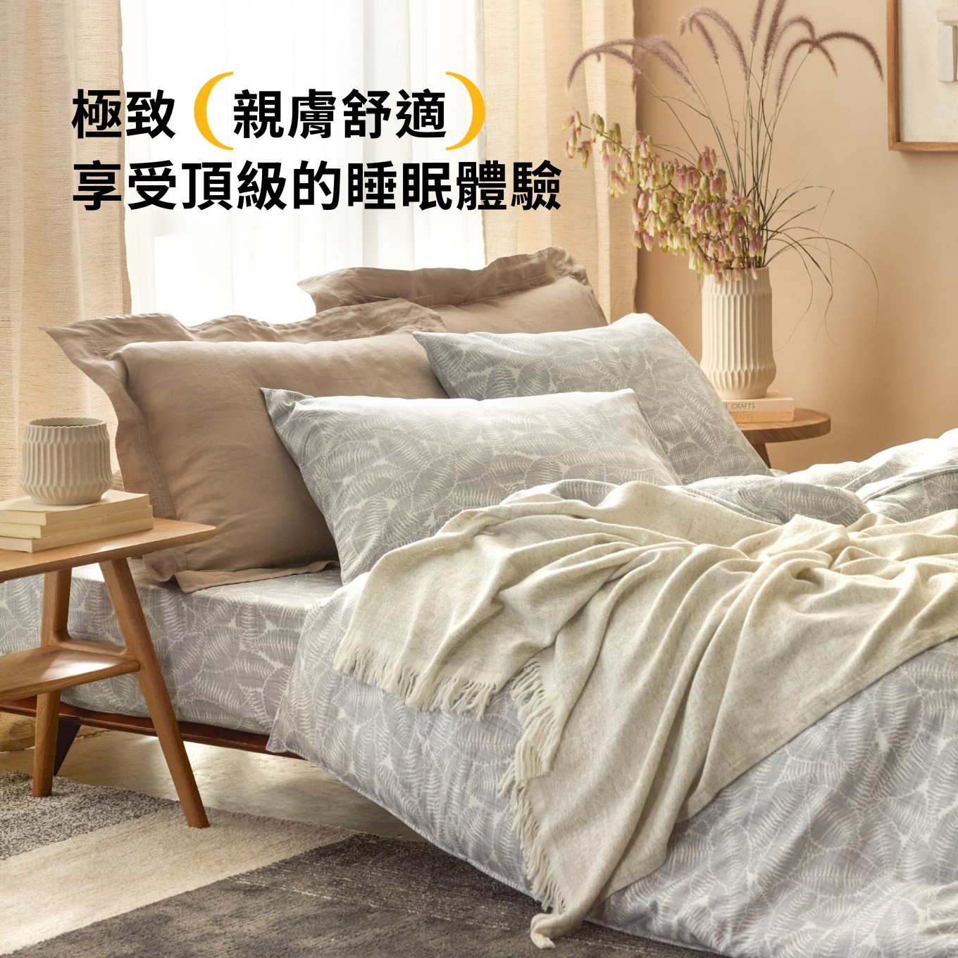 採用精細紡紗技術,生產最纖細的天絲™纖維紗,賦予面料光滑柔軟、如絲綢般的觸感,輕柔撫過肌膚時,如同羽毛般的輕盈感,不易產生摩擦,讓舒眠時光增添了零重力的包覆感。