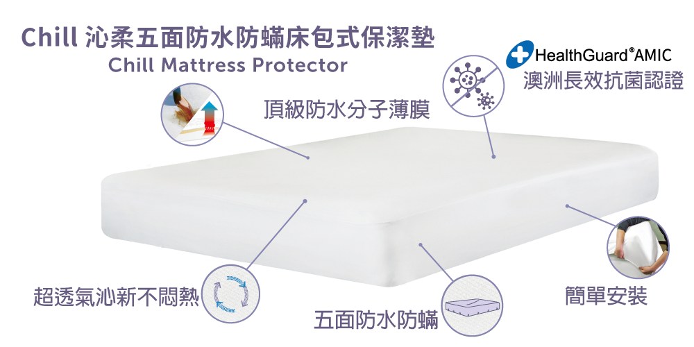 PAB沁柔防水防螨抗菌床包式保潔墊 雙人