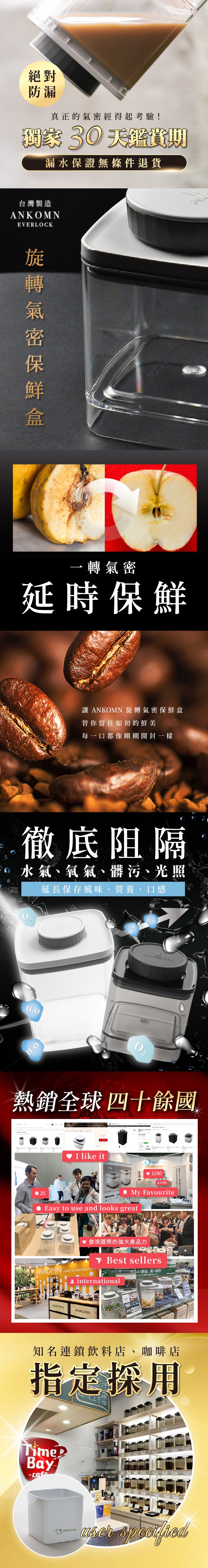 ANKOMN EVERLOCK 氣密保鮮盒0.3L 半透明黑