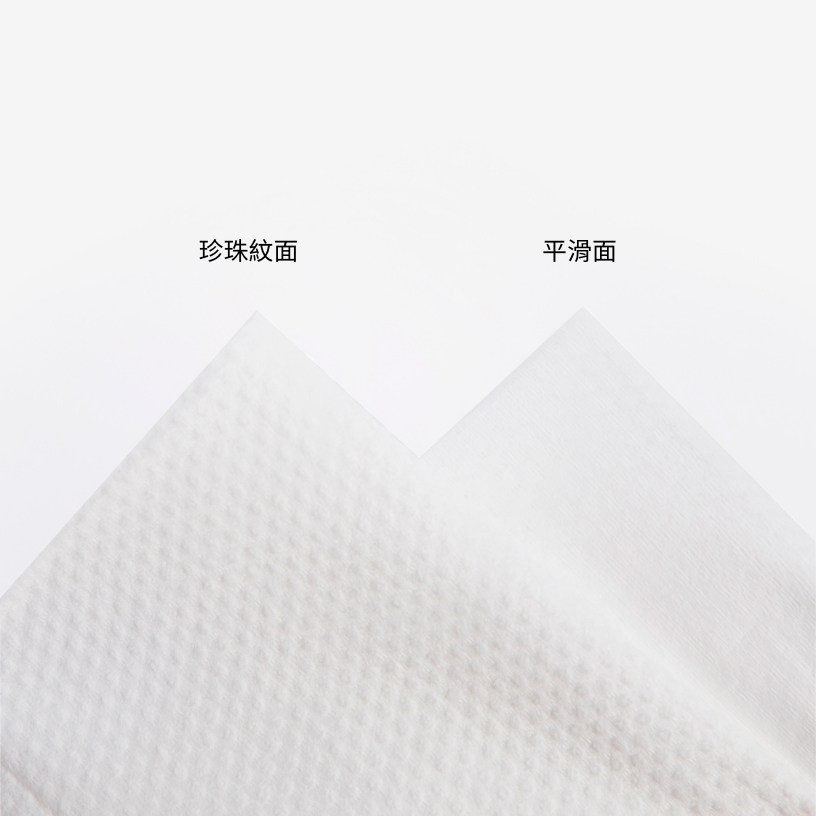 平滑面:細緻吸水,適合擦拭、濕敷使用,也適用於敏弱肌。