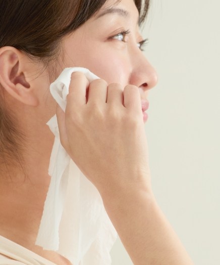 用洗臉巾輕輕擦拭殘留水分