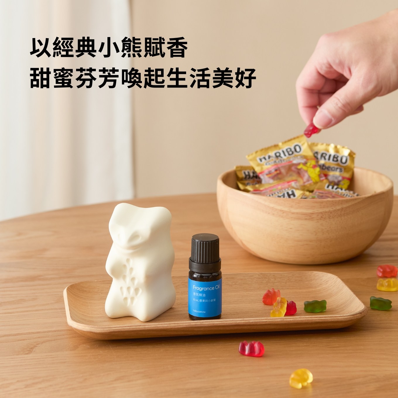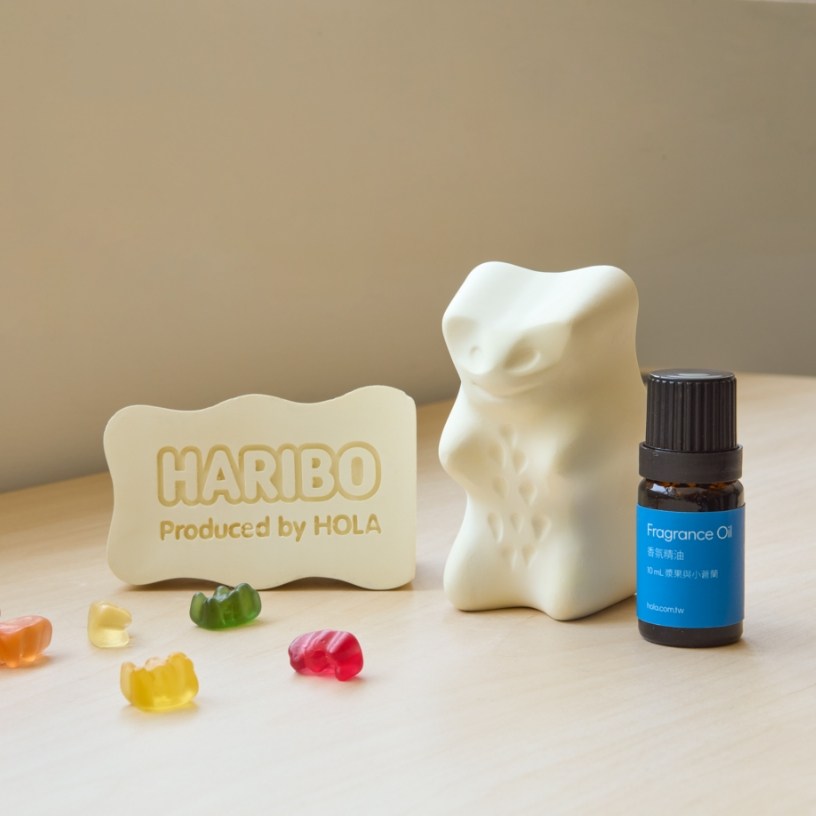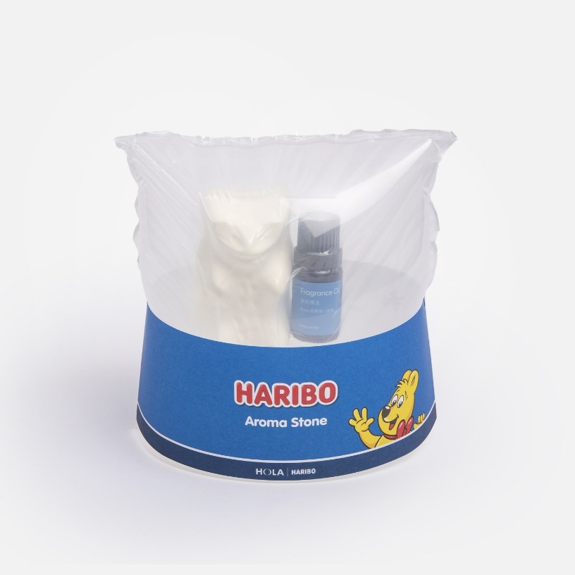 還原軟糖的立體輪廓,背面印有HARIBO的圓潤LOGO,雙面都可使用。奶油白的質感霧面表面,讓香氛石擺放在任何角落,都能展現可愛風格。