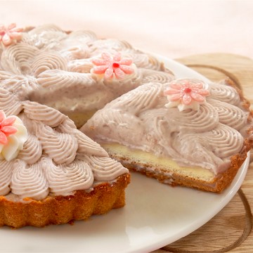 香酥塔皮上有著淡淡的紫色花瓣綻放,是純芋泥融入北海道奶霜的原色,口感輕盈。接著是香醇濃郁帶有顆粒的芋泥餡、奶霜與泡芙蛋糕,豐富的層次讓人一口接著一口。產品附贈表格