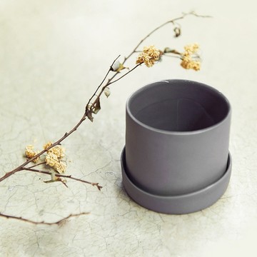 純灰系列 | 小圓形純色灰色水泥盆器 可搭配同色系底盤
