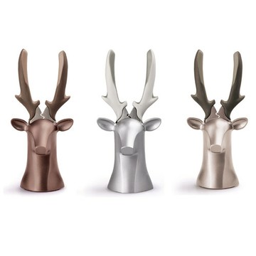 Dear Deer II座鹿身本體以抗銹、耐腐蝕鋁合金為基材,輕巧堅固。此款座鹿三色為半光澤金屬色、一個亮金特殊色(另款)。分別搭配不同顏色的鉗子鹿角,妝點出更多居家風格。