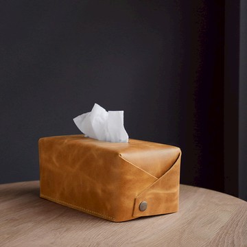皮革衛生紙套,使用全苯染真皮皮革,運用皮革本身的挺度,搭配兩側有如衣領的雙開造型,兼具美觀與實用性,柔軟而耐用。衛生紙是居家必備的生活用品,為其穿上新衣更能凸顯主人細膩的心思,提升空間的細緻度和美感。