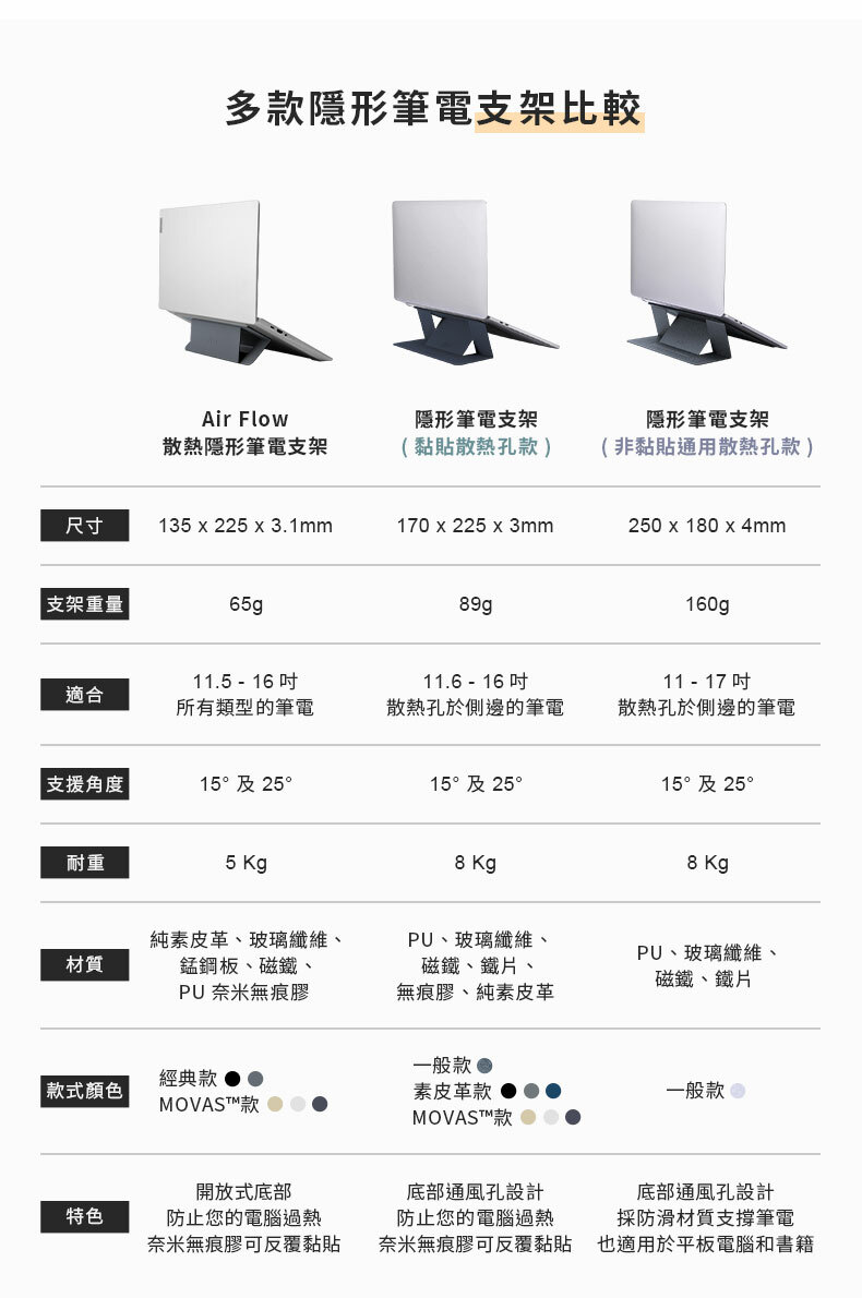 MOFT | 隱形筆電支架 黏貼散熱孔款 MOVAS材質新上市 11.6-16吋筆電適用