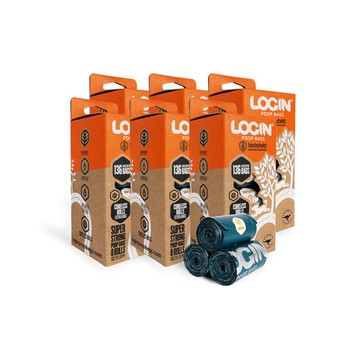 澳洲LOGIN洛格-生物降解拾便袋 1盒/8捲(共136張)藍袋子 x 4組(買二件送寵物玩具*1包)