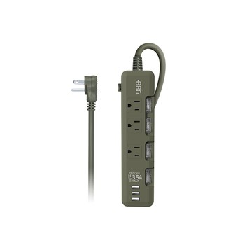 點我下載+886|極野家 4開3插3USB過載保護延長線 1.8米-3.5A大輸出 (軍綠) HPS1431AG18