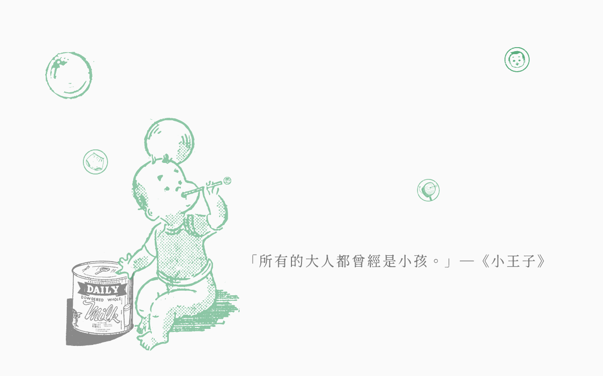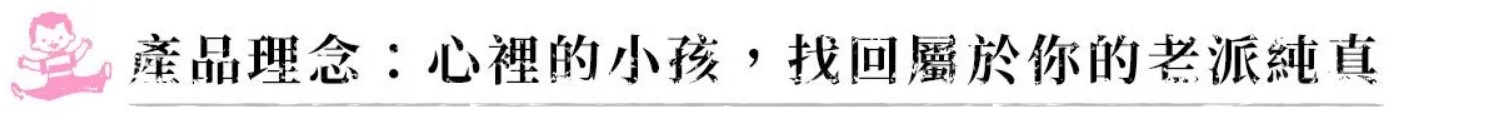 從小孩長大成人,我們經歷過各式各樣的煩憂,面對不那麼美好的現實世界,能有什麼更好的生活姿態呢?我們相信,能抵禦現實世界的,只有擁抱自己內心的小孩──那份童心與真誠、對事物充滿好奇心、對生活大小事總有著驚喜與悸動的,小時候的我們。