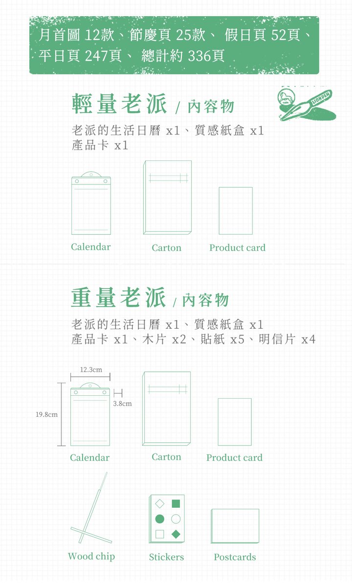 我們自40,000餘張的老報廣告中,精選出1000多張、符合「老派/初心」理念的圖像,過程中耗時費力,僅僅是挑圖就花費了2-3個月左右的時間。自企劃發想,到設計溝通,乃至印刷監製、打樣出品,反覆確認諸多繁瑣細節,也面臨各種問題與挑戰,但我們選擇一步步踏實前進,用最誠心真摯的態度面對各種困難,只為了將最完美的老派日曆傳遞到你手中,陪伴你一同度過生活中的苦與樂。