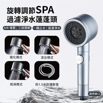 APEX| 旋轉調節三段增壓SPA過濾淨水蓮蓬頭+附1.5米防爆軟管