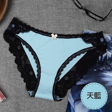 【Maggie+】薄款柔軟甜美中腰蕾絲滾邊女用三角褲-藍色