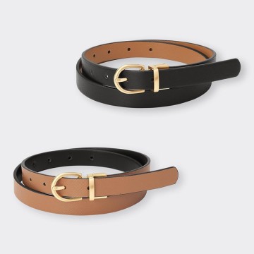 弧形扣環人造皮革無針設計細腰帶(01000815100) - earth music&ecology
