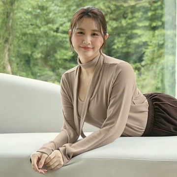 Q彈暖薑絨車線長袖上衣(附領綁帶)
