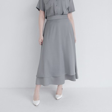 仙女雙層後鬆緊光澤長裙 MISS. 中大尺碼裙子