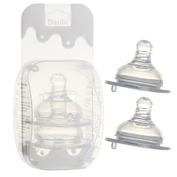 任選- Basilic 貝喜力克(寬口徑)柔軟奶嘴-M-2入(一般用)