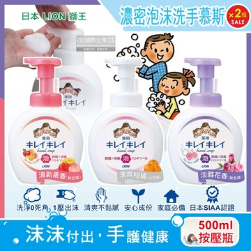 點我下載(2瓶超值組)日本LION獅王-趣淨植萃濃密泡沫洗手慕斯500ml/按壓瓶