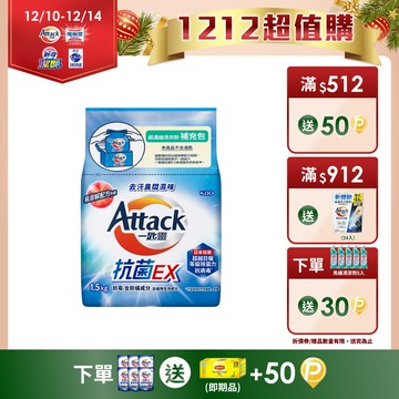 [家速配]一匙靈Attack抗菌EX洗衣精補充-1.5Kg