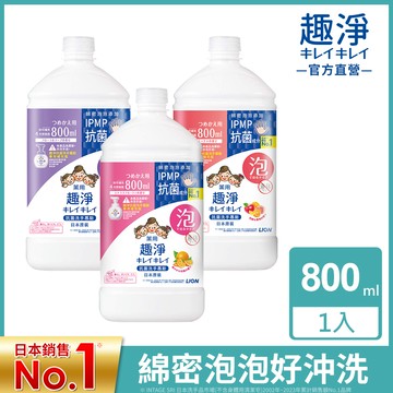 LION 獅王 趣淨 日本原裝進口 泡沫洗手慕斯補充瓶 花香 800ml 1件