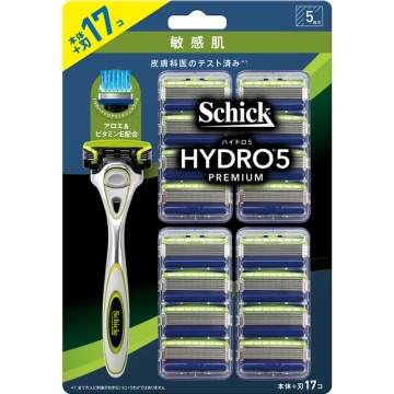Schick 舒適牌 水次元 5Premium 敏感肌用刮鬍刀組 刀把 + 刀片 17個 1組 1盒