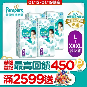 點我下載【幫寶適】清新幫 拉拉褲/褲型尿布 L/XL/XXL/XXXL(4包/箱)
