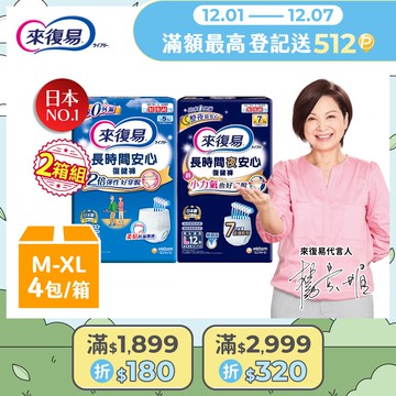 [點數回饋] 【箱購】來復易 長時間夜安心復健褲 (M~XL號/4包/箱)|褲型紙尿褲【杏一】
