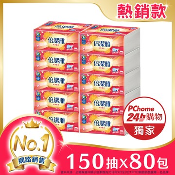 倍潔雅 純萃柔感抽取式衛生紙(150抽x10包x8袋/箱)