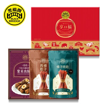 【黑橋牌】享口福嚴選肉乾禮盒-厚燒條子肉乾+馬告條子肉乾+巧克力肉酥捲