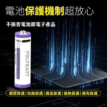 POLYBATT 3號 AA 1.5V USB 充電式鋰電池(2475mWh)