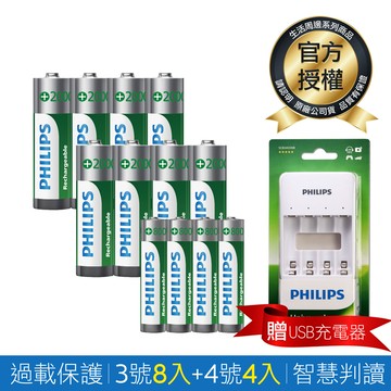 【Philips 飛利浦】低自放充電電池AA 3號 +AAA 4號(各8入)