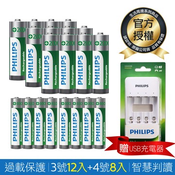 PHILIPS 鎳氫低自放充電電池3號8入 + 4號8入