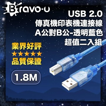 Bravo-u USB 2.0 傳真機印表機連接線/A公對B公-透明藍色(1.8米)