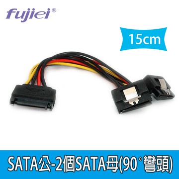 fujiei SATA公-2個SATA母(90˚彎頭)電源線15cm SQ2097