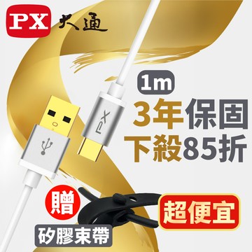PX大通 UAC2-1W USB2.0-A-to-USB-C Type-C 1M閃充快充1米充電傳輸線白